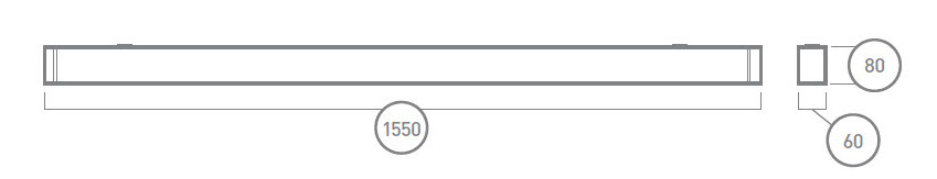 Размеры светильника: 1550 мм х 60 мм х 80 мм