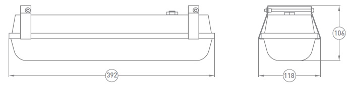 Размеры светильника: 392 мм х 118 мм х 106 мм