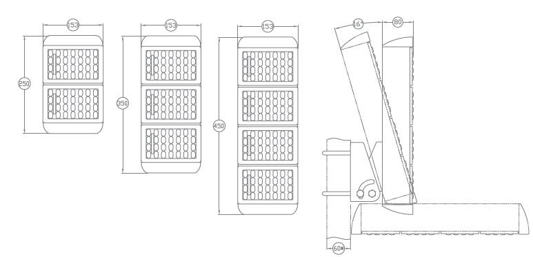 Размер светильника: 250 мм х 153 мм х 80 мм d60
